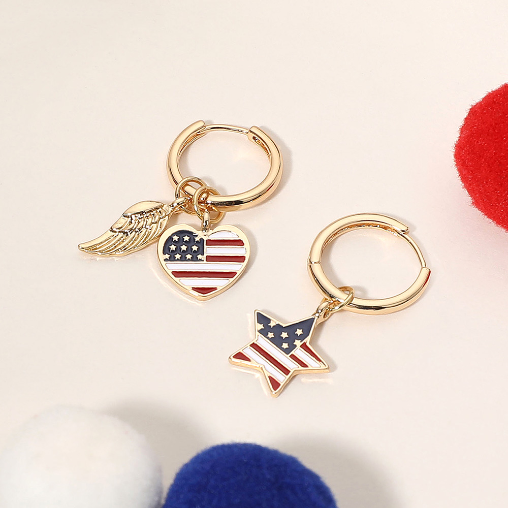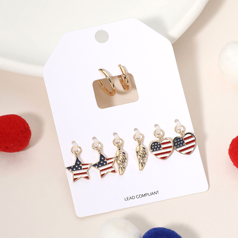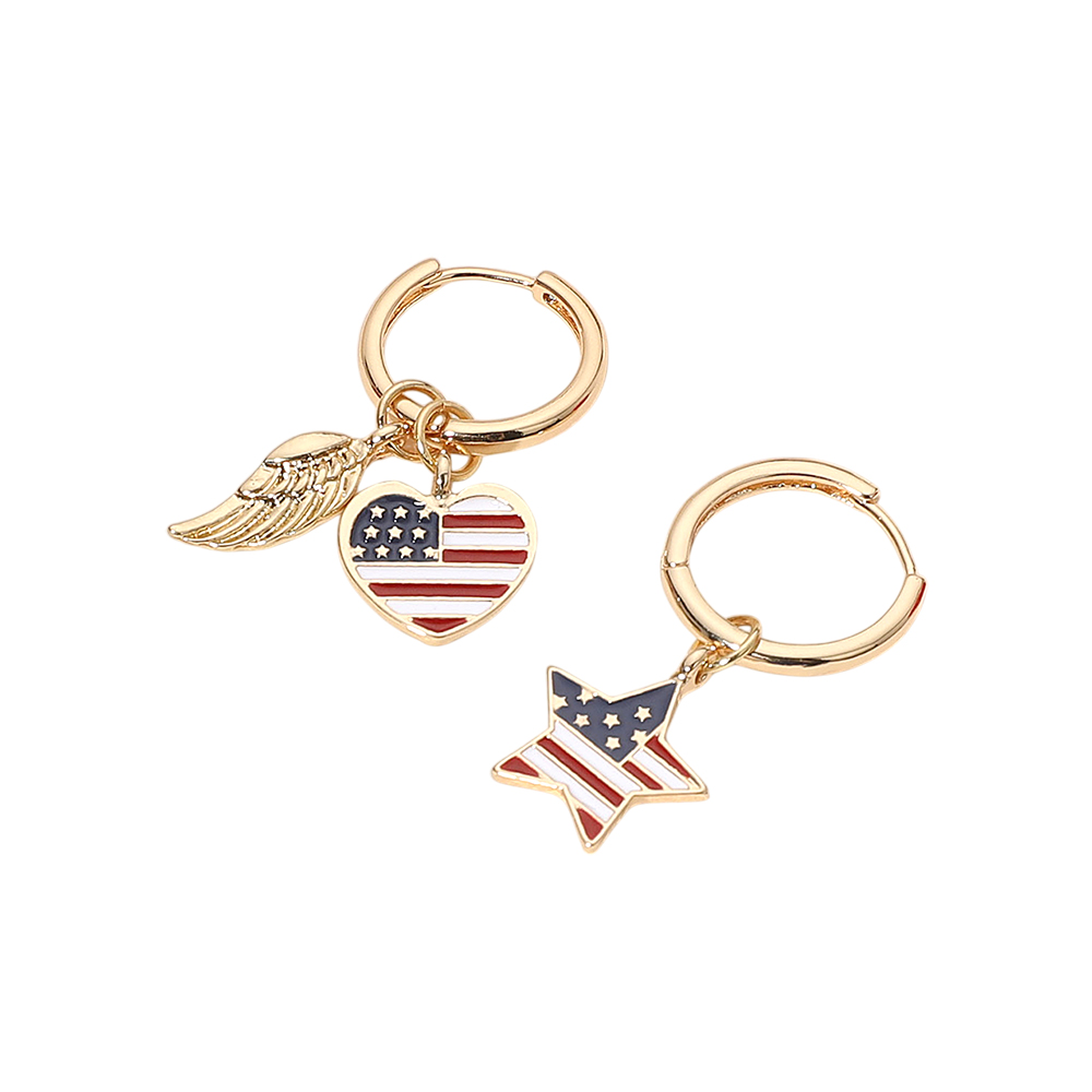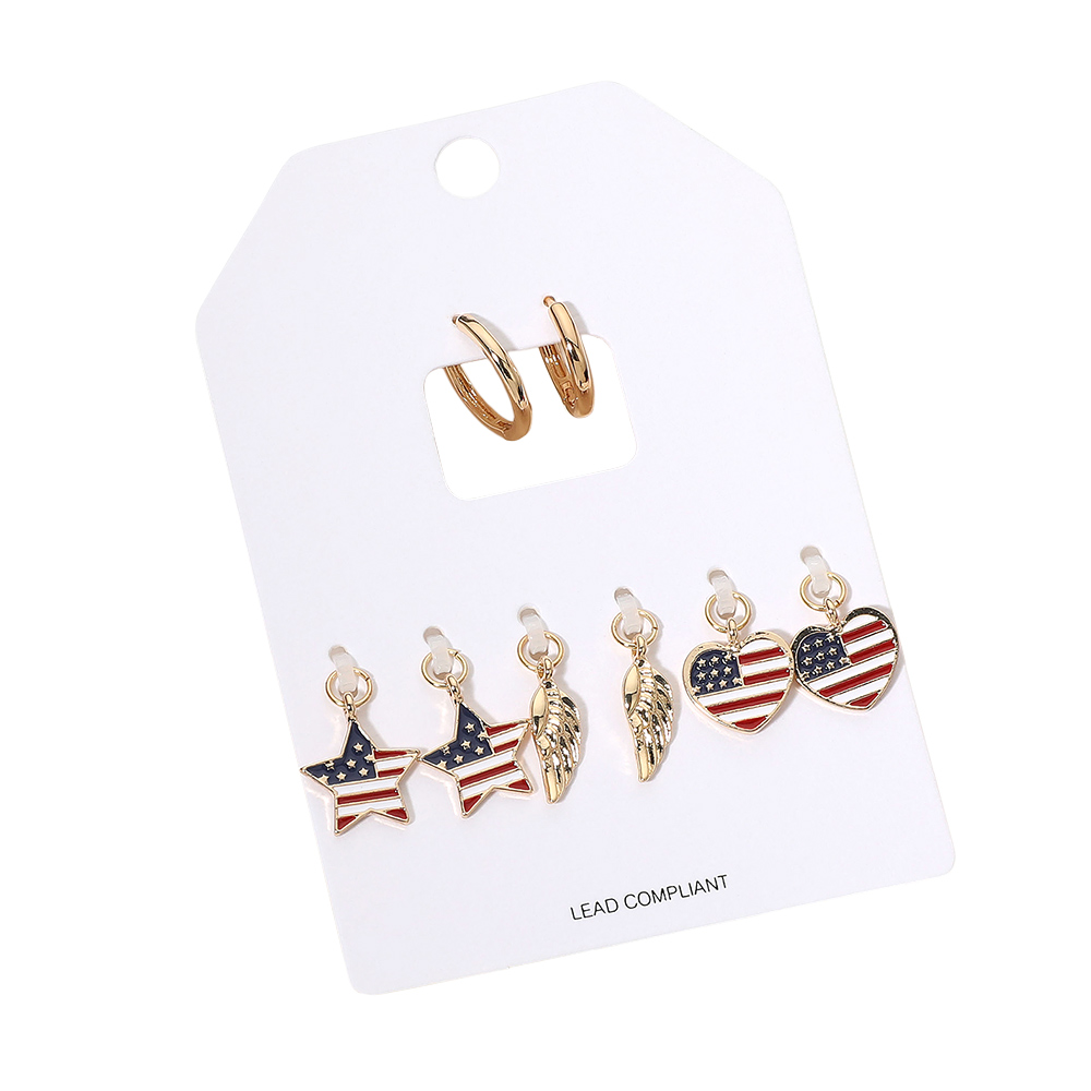 4Pairs - Enamel American USA Flag Star Heart Wing Interchangeable Charm Hoop Earrings
