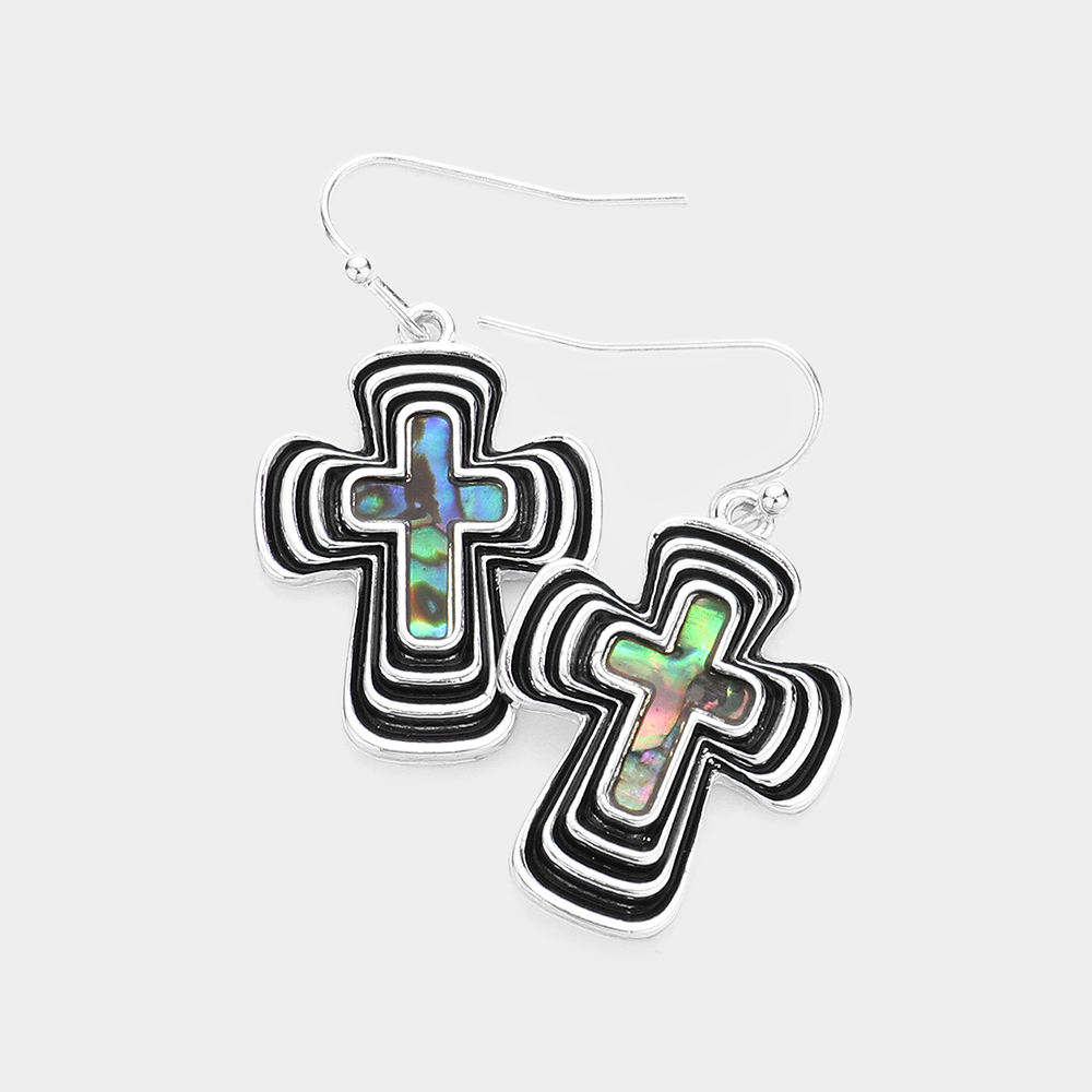 Abalone Accented Cross Dangle Earrings