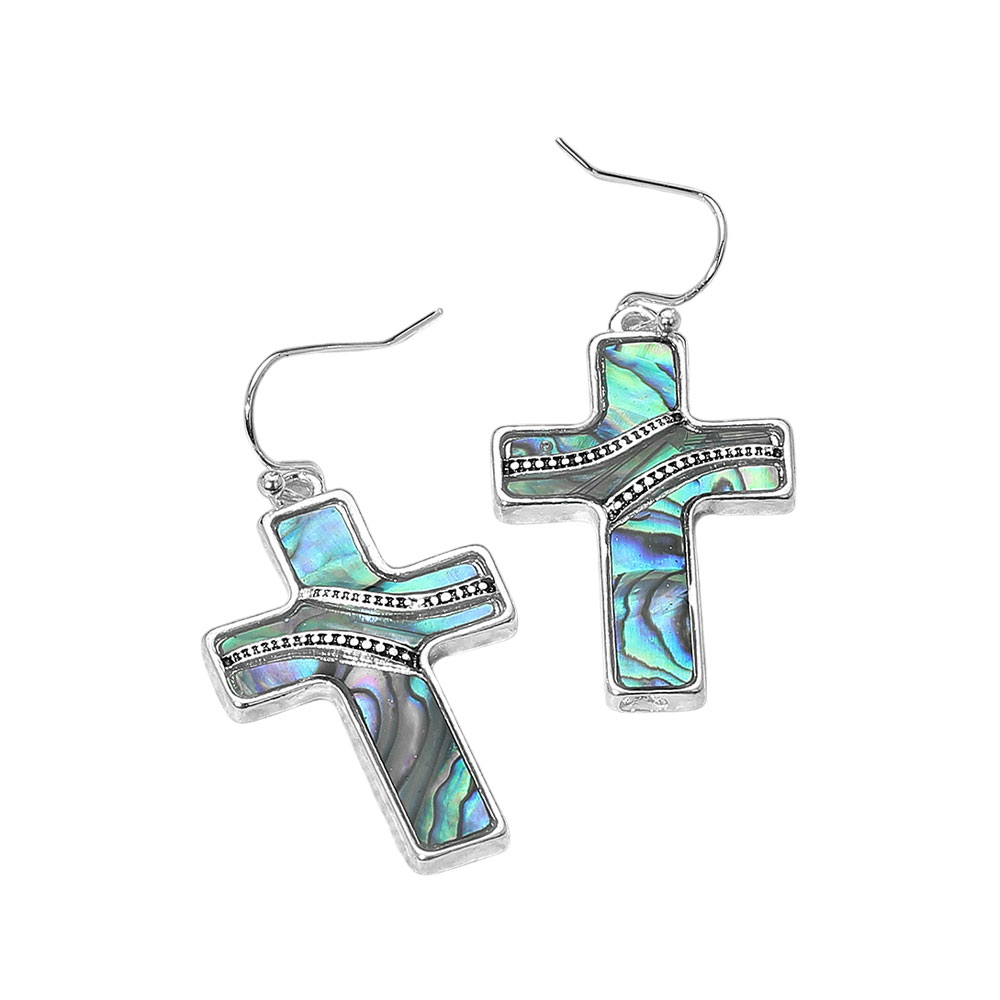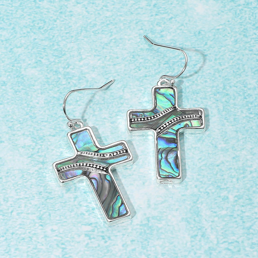 Details • Size : 0.8" X 1.75" • Fish Hook Back • Stylish cross earrings with eye-catching inlay details and a dangle hook design. A meaningful and fashionable accessory perfect for daily wear or as a statement for special occasions. Lightweight and elegant. • Lead and Nickel Compliant