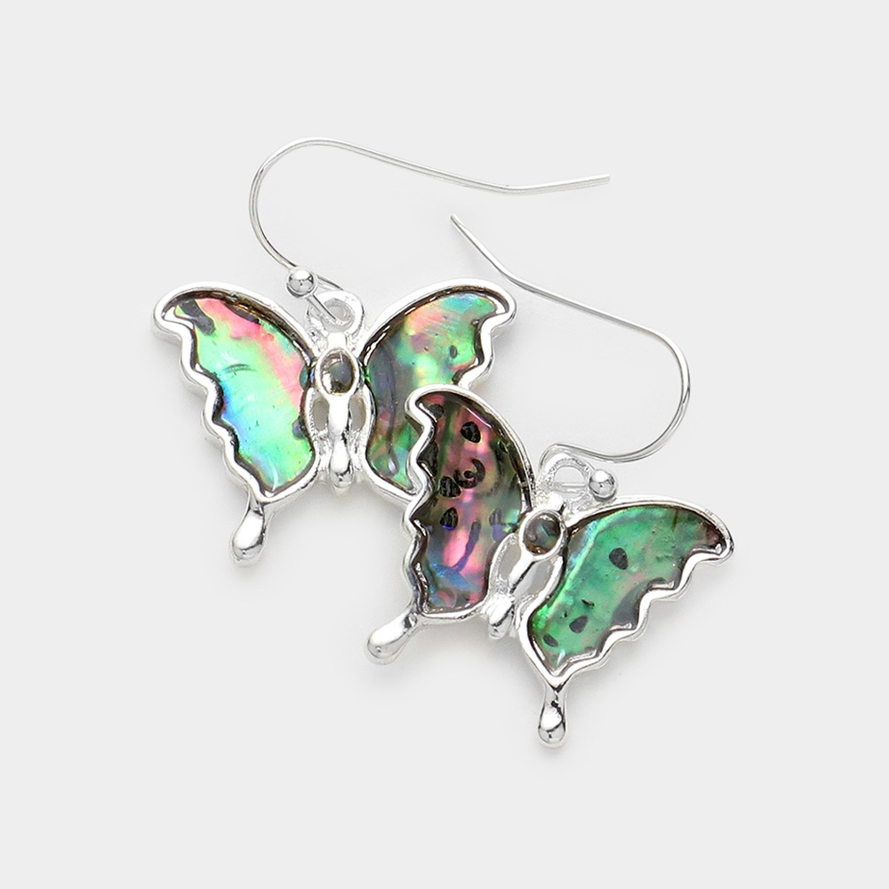 Abalone Embossed Metal Butterfly Dangle Earrings