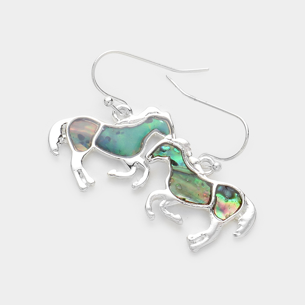 Abalone Embossed Metal Horse Dangle Earrings