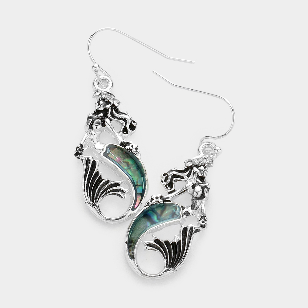 Abalone Embossed Metal Butterfly Dangle Earrings