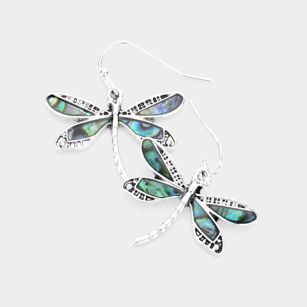 Antique Metal Abalone Palm Tree Dangle Earrings