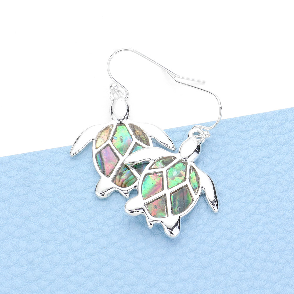 Brass Metal Abalone Rectangle Pendant Double Layered Necklace
