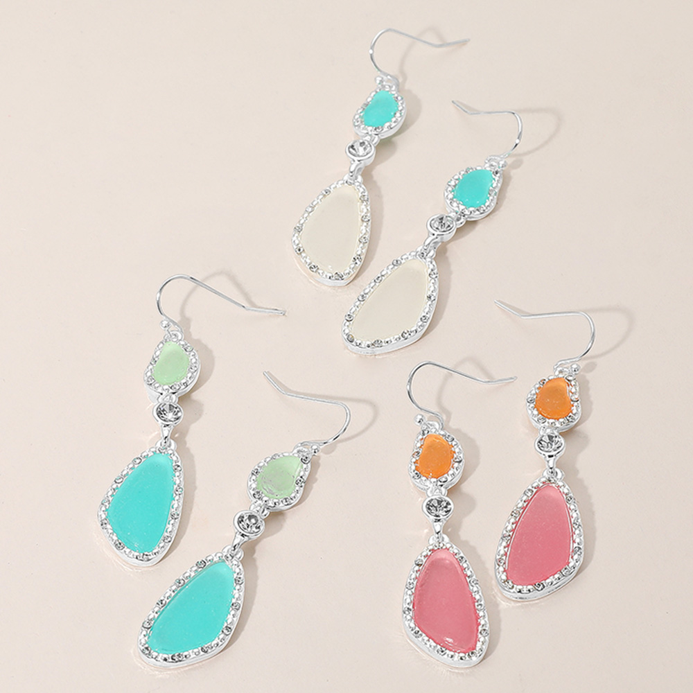 Abstract Sea Glass Link Dropdown Dangle Earrings