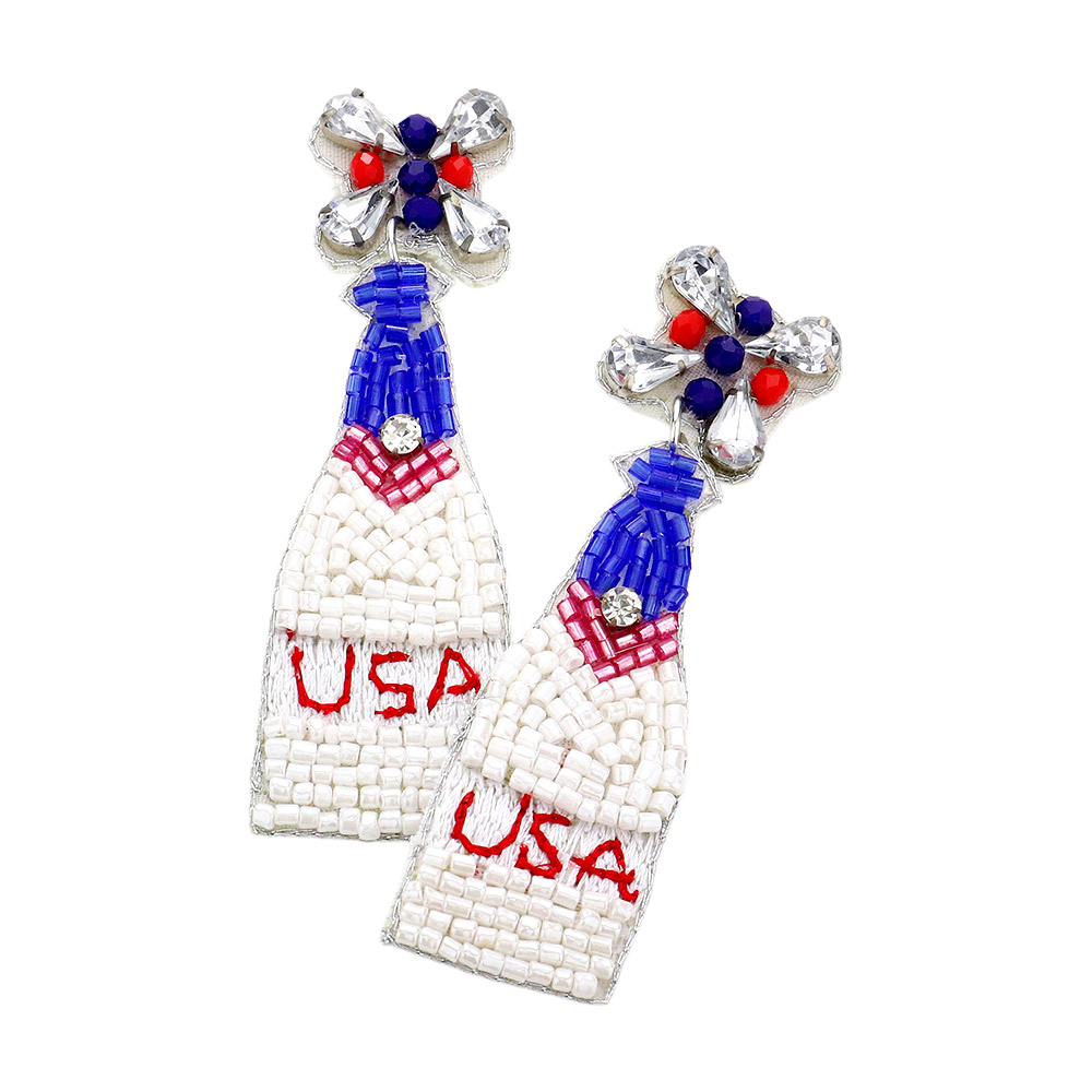 American USA Beaded Champagne Dangle Earrings