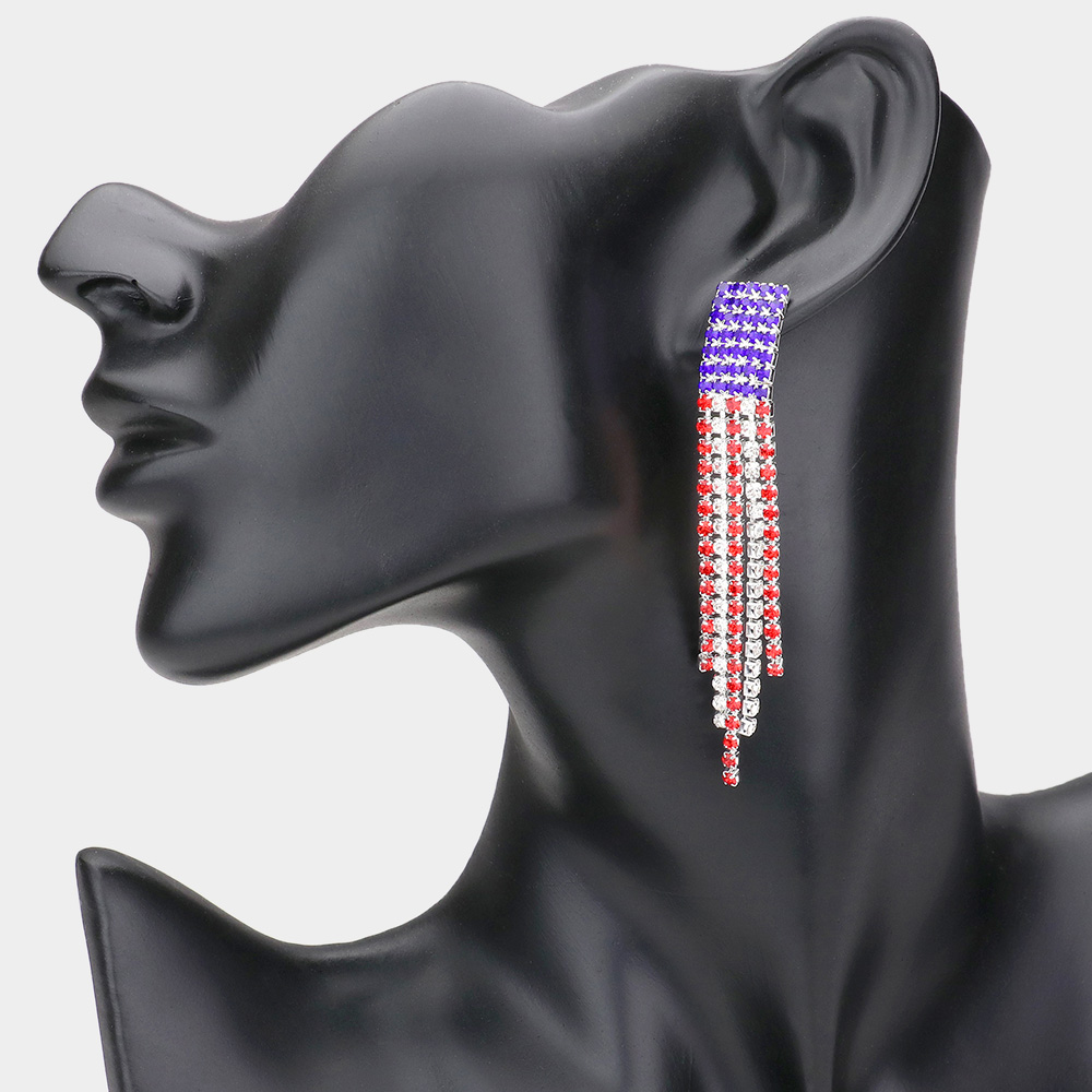 Rhinestone Paved Fringe Clip On Evening Earrings