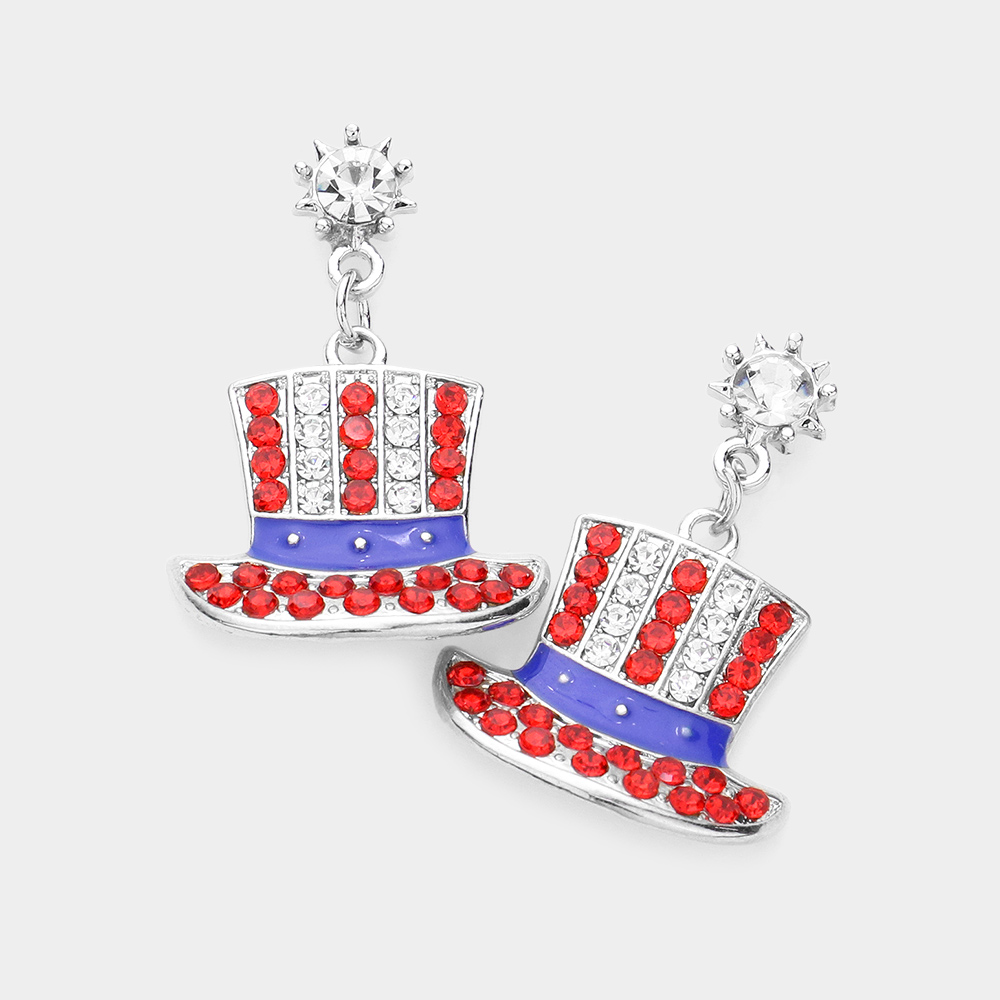 Fabric Back American USA Flag Seed Beaded Rocket Triple Tassel Link Dangle Earrings