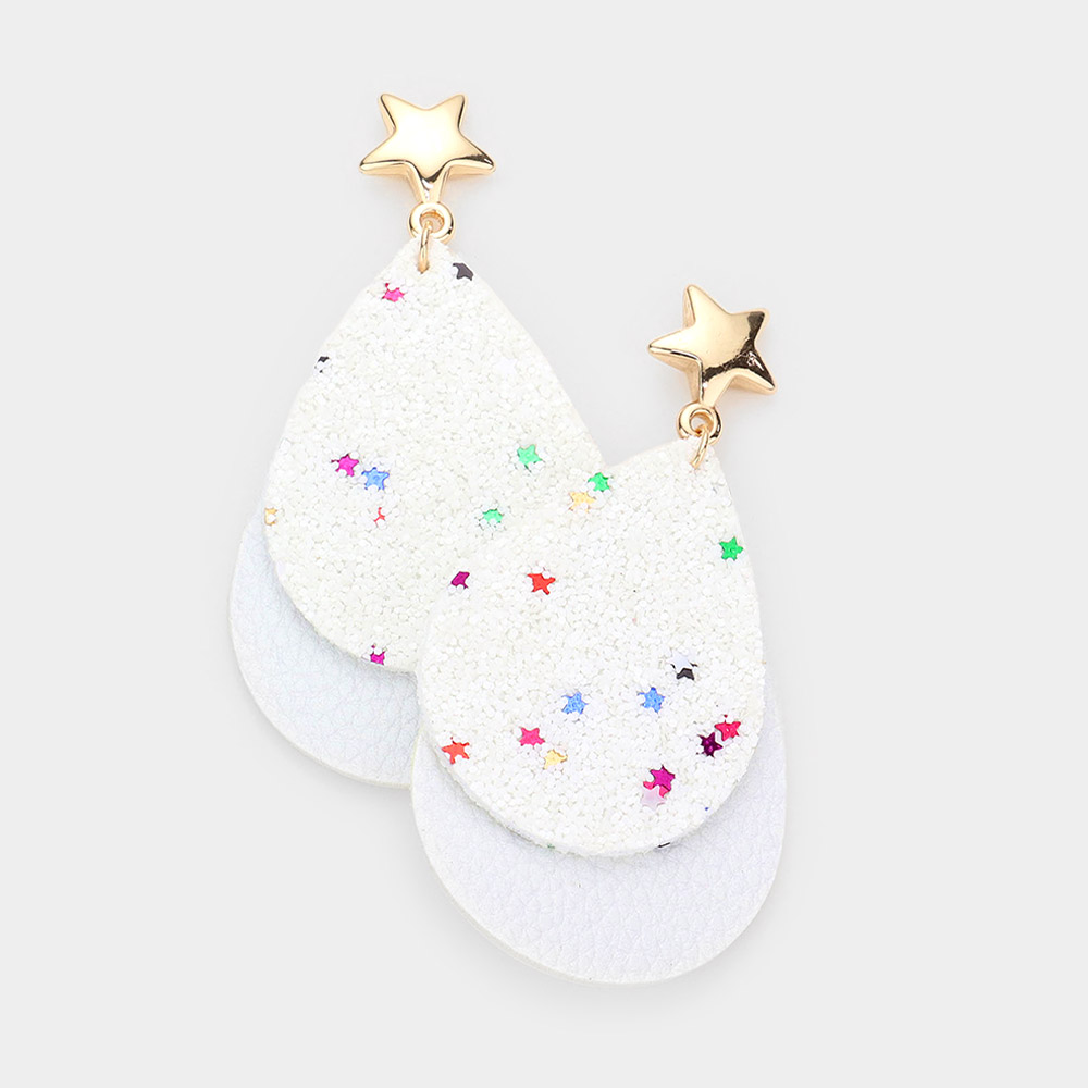 Glittered American USA Flag Ice Cream Cone Dangle Earrings