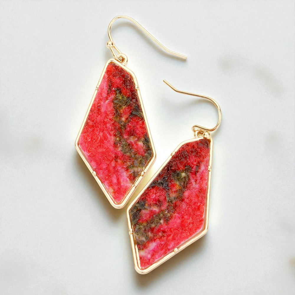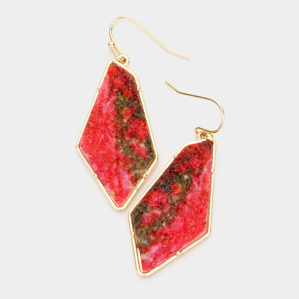 3Pairs - Brass Metal Round Stone Druzy Star Hoop Earring Set