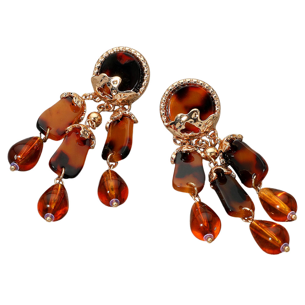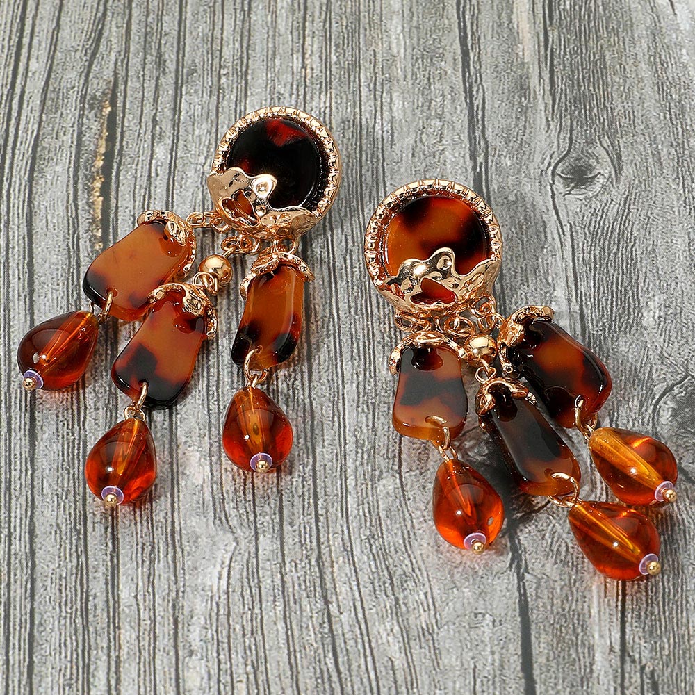 Details • Size : 1" X 3" • Post Back • Elegant dangle earrings featuring tortoiseshell-inspired accents with teardrop and geometric drops. Perfect for adding a touch of vintage charm and sophistication to any outfit. • Lead and Nickel Compliant