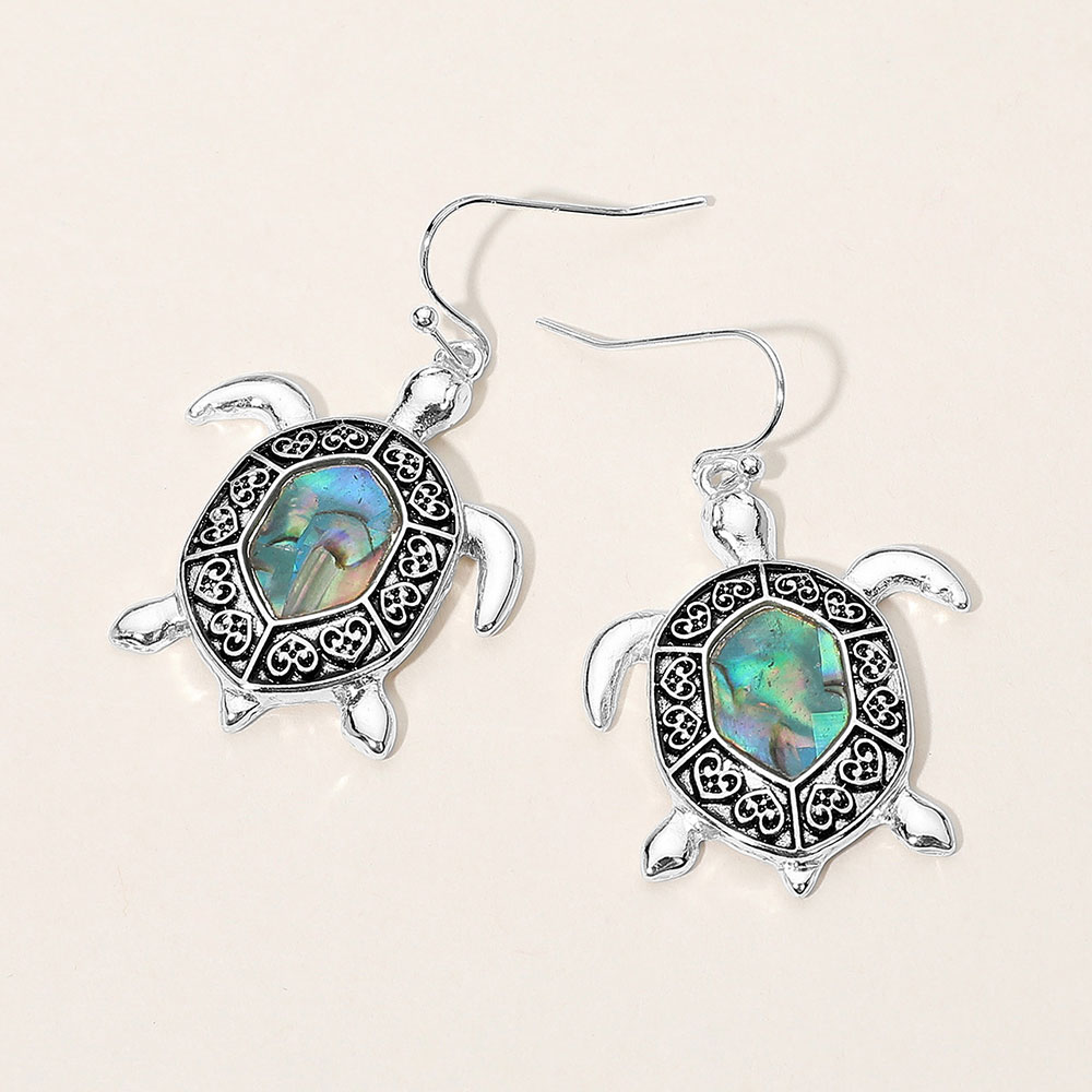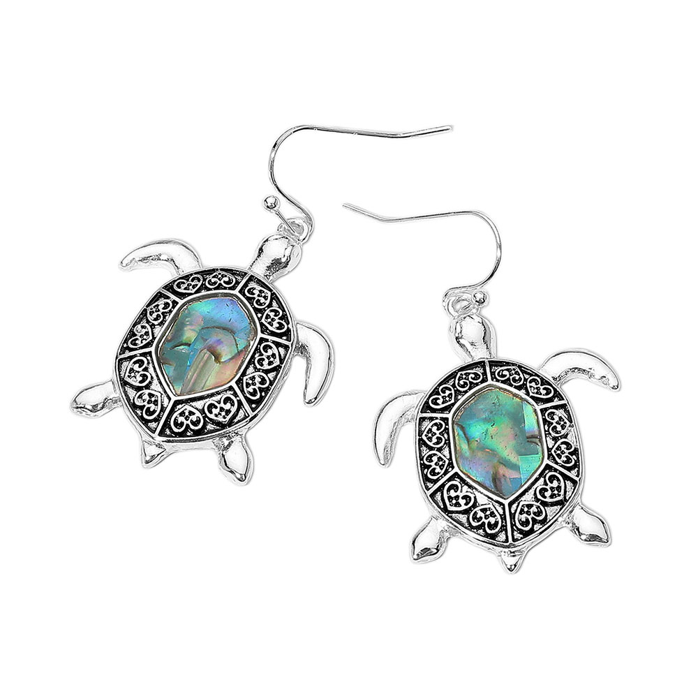 Antique Metal Abalone Pointed Sea Turtle Dangle Earrings