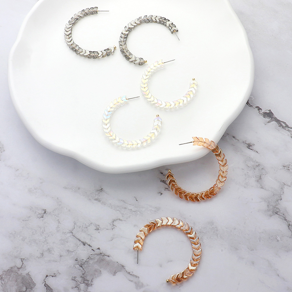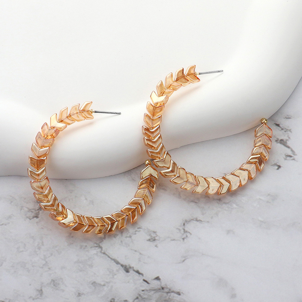 Triangle Beads Embellished Open Circle Dangle Earrings