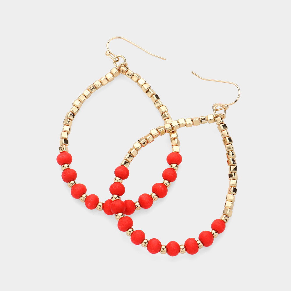 Ball Metal Beaded Open Teardrop Dangle Earrings