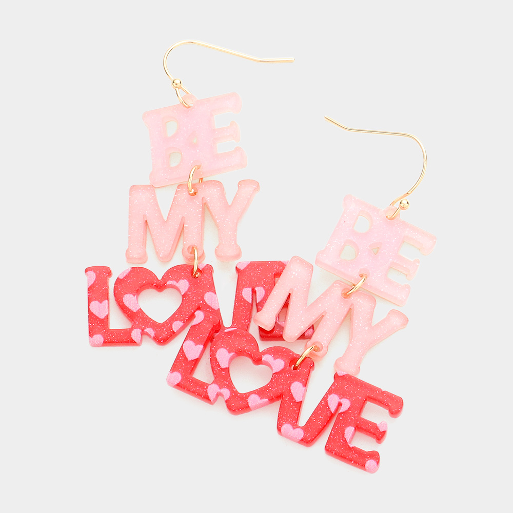 Be My Love Glittered Resin Message Link Dangle Earrings