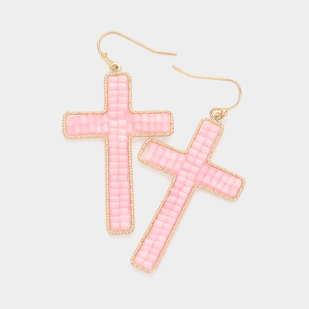 Semi Fine Collection - 18K White Gold Dipped Cross Dangle Earrings