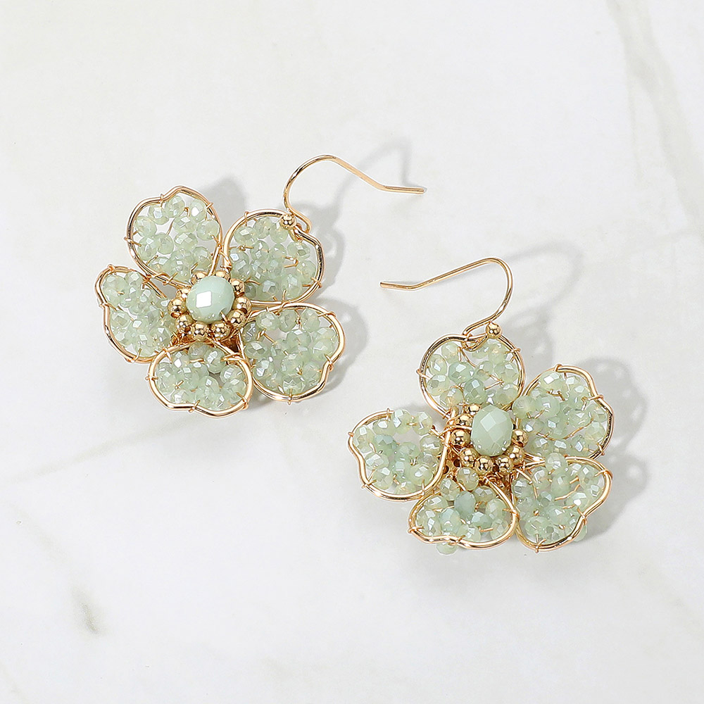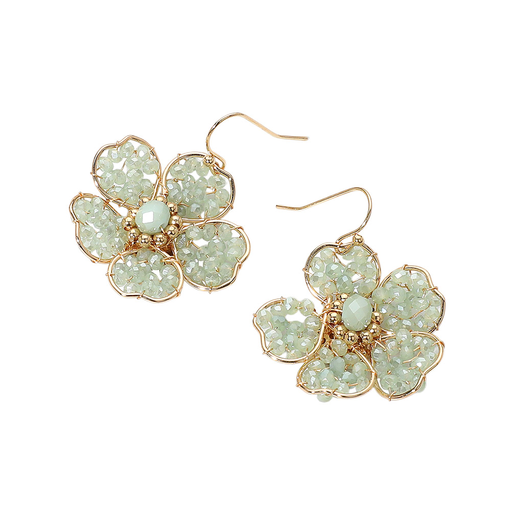 Details • Size : 1.2" X 1.5" • Fish Hook Back • Elegant drop earrings featuring a floral silhouette with clustered bead petals and a textured center. Lightweight and eye-catching, perfect for adding a touch of charm to casual or dressy outfits. • Lead and Nickel Compliant