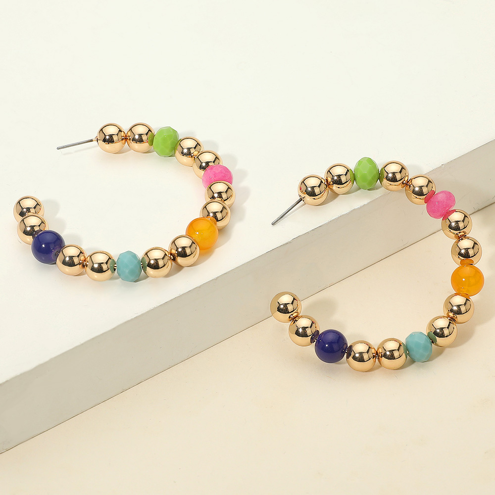 Details • Size : 2.25" X 2.25" • Post Back • Make a bold style statement with these chic beaded hoop earrings featuring glossy round beads accented with vibrant pops of color. Lightweight and playful, these hoops add charm and personality to any outfit, perfect for casual wear, parties, or gifting to someone who loves trendy accessories. • Lead and Nickel Compliant