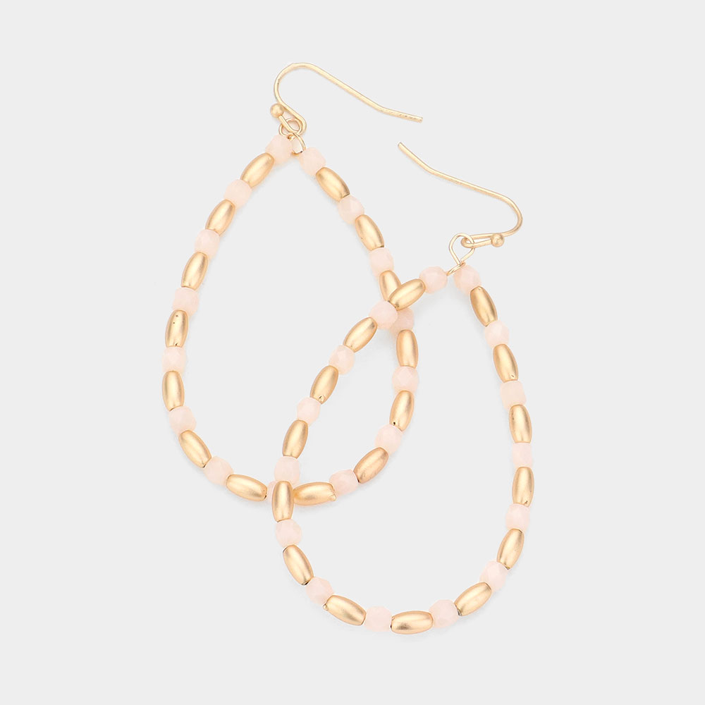 Faux Leather Back Boho Seed Beaded Dangle Earrings