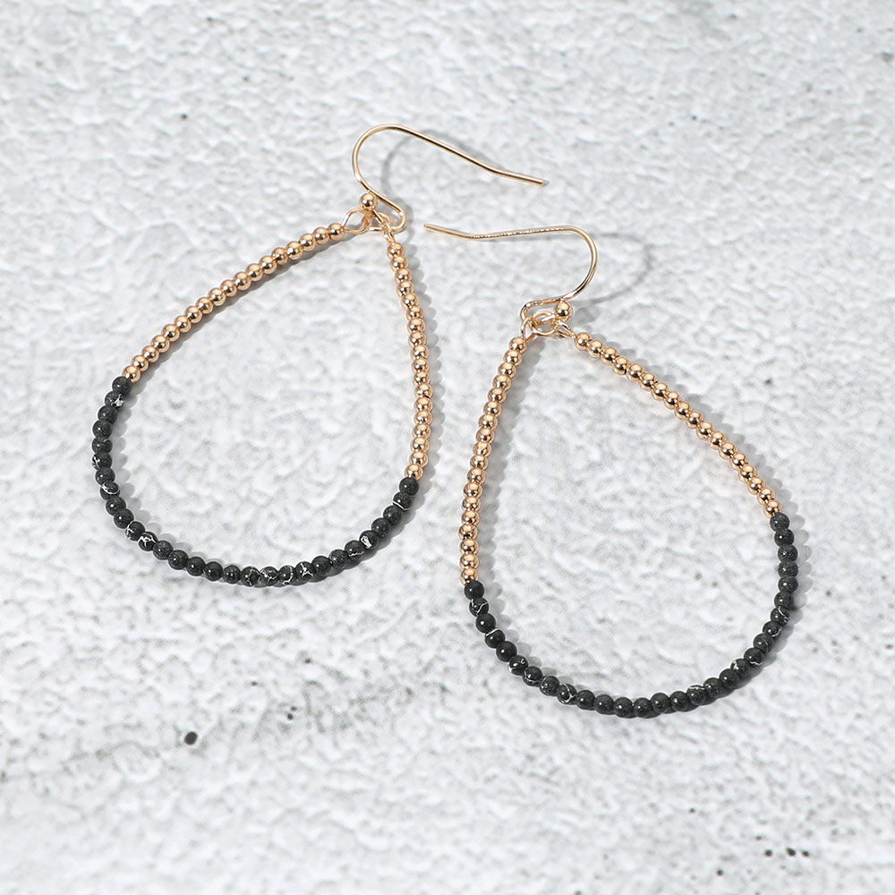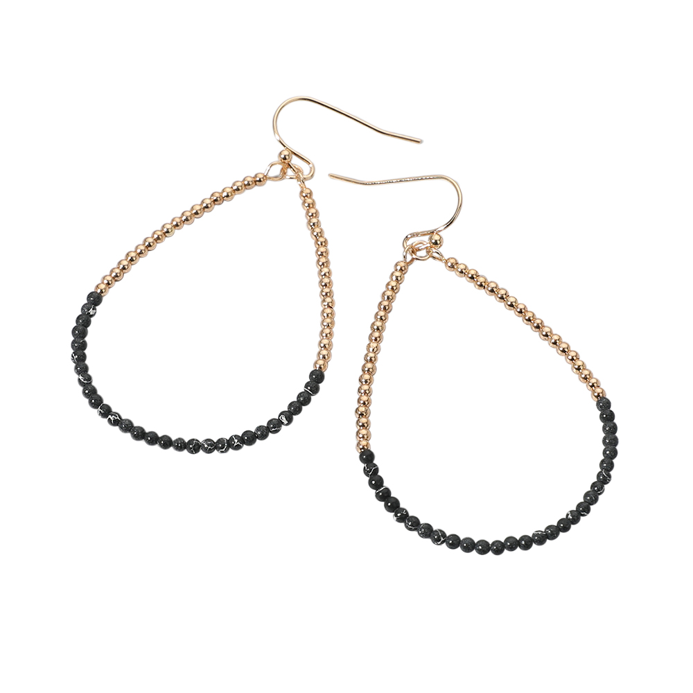 Details • Size : 1.3" X 2.25" • Fish Hook Back • Graceful teardrop earrings featuring a blend of smooth and beaded textures for a light, elegant silhouette. The contrasting bead design adds visual interest, making these earrings a stylish accent for everyday wear or special occasions. A refined addition to any collection. • Lead and Nickel Compliant