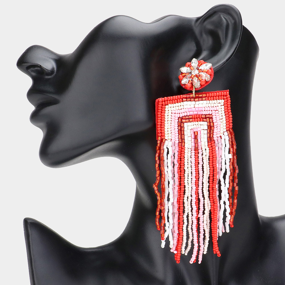 Rhinestone Paved Flower Pointed Fringe Evening Earrings