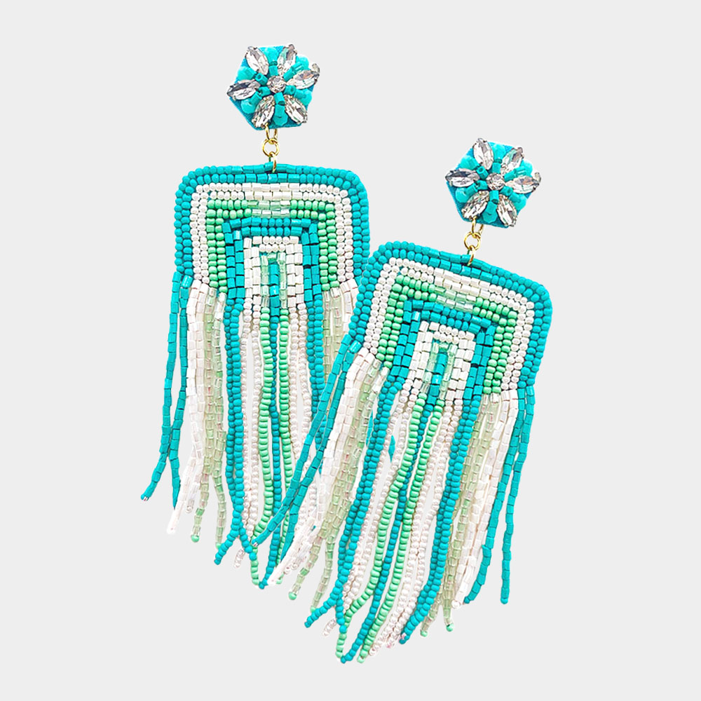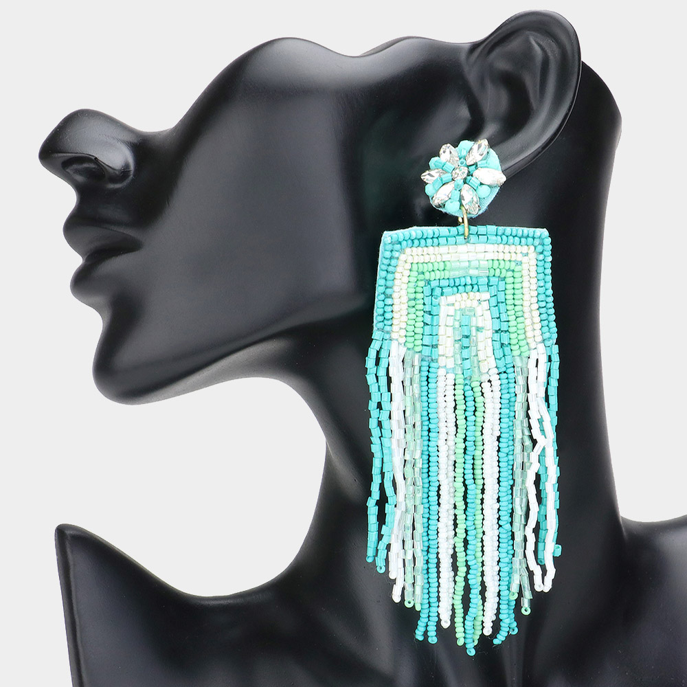 Thread Wrapped Oval Hoop Long Drop Chain Tassel Necklace