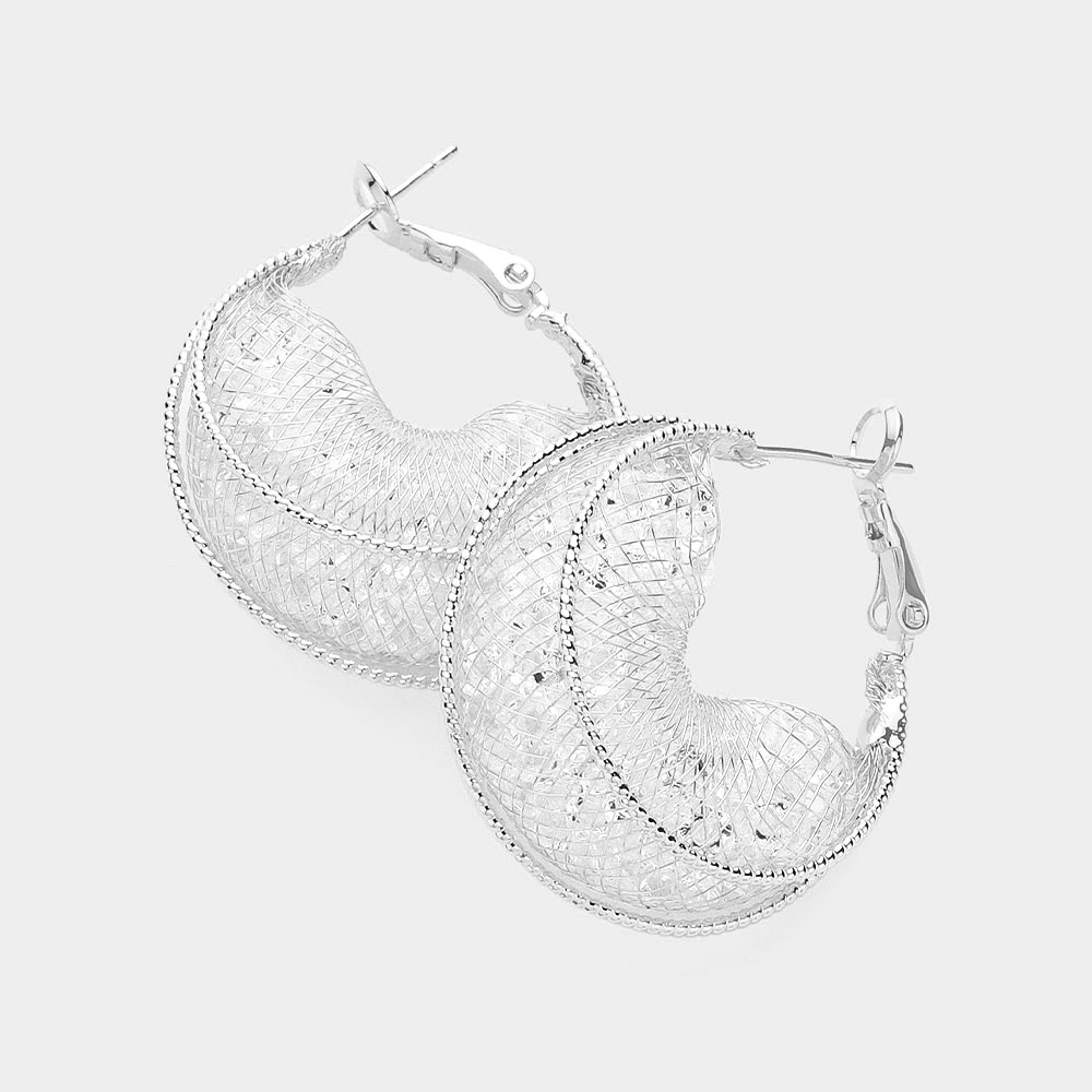 Beads Inside Metal Mesh Crescent Hoop Earrings