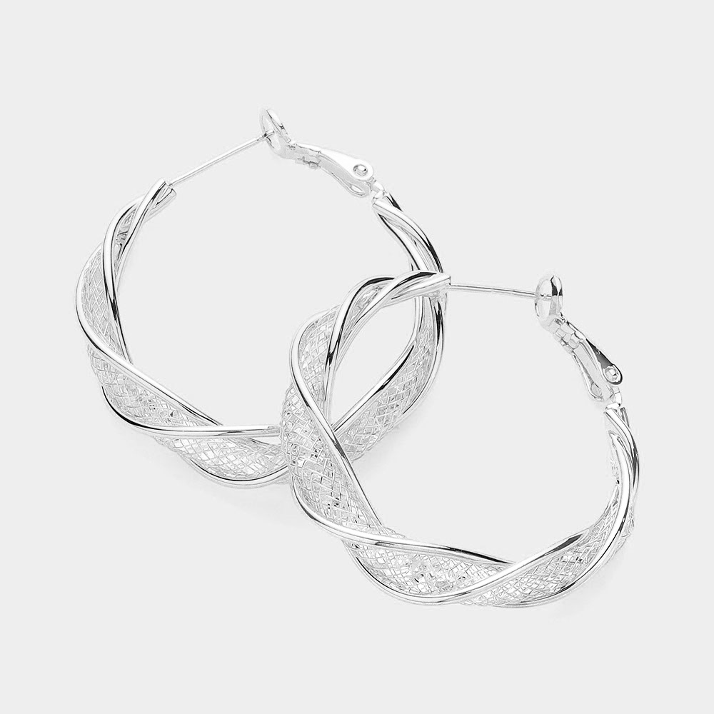 Beads Inside Metal Mesh Twisted Hoop Earrings