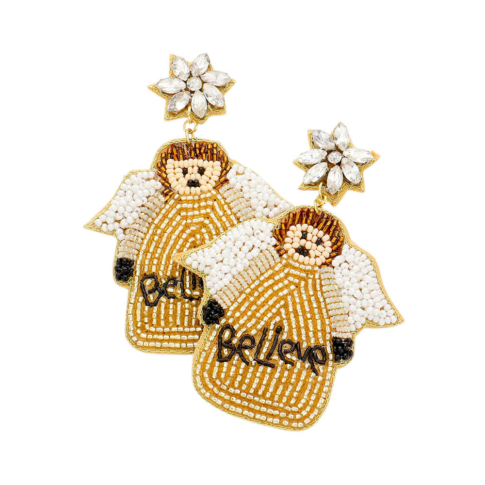 Believe Message Felt Back Beaded Angel Dangle Earrings