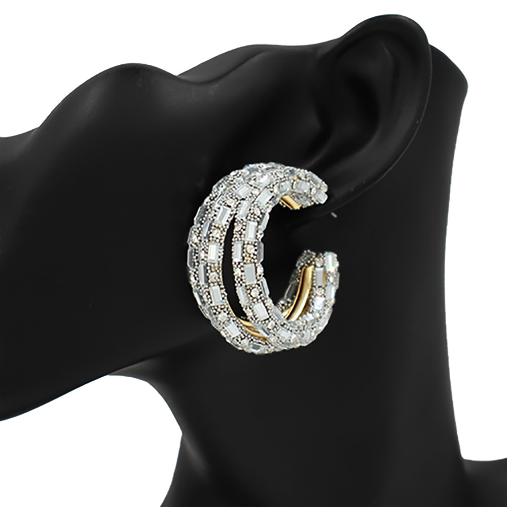 Rhinestone Accent Modern Horsebit Link Drop Earrings