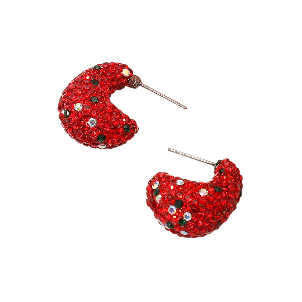 Details • Size : 0.7" X 0.9" • Post Back • Compact hoop earrings featuring dazzling rhinestone detailing for a subtle yet striking shine. Perfect for adding a touch of glamour to casual or formal looks. Lightweight and comfortable, these small hoops bring elegance and sophistication to any jewelry collection or outfit. • Lead and Nickel Compliant