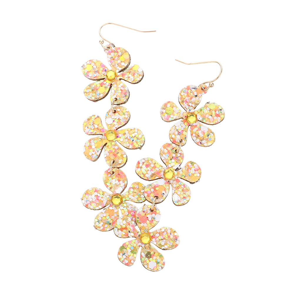 Bling Triple Flower Link Dropdown Earrings