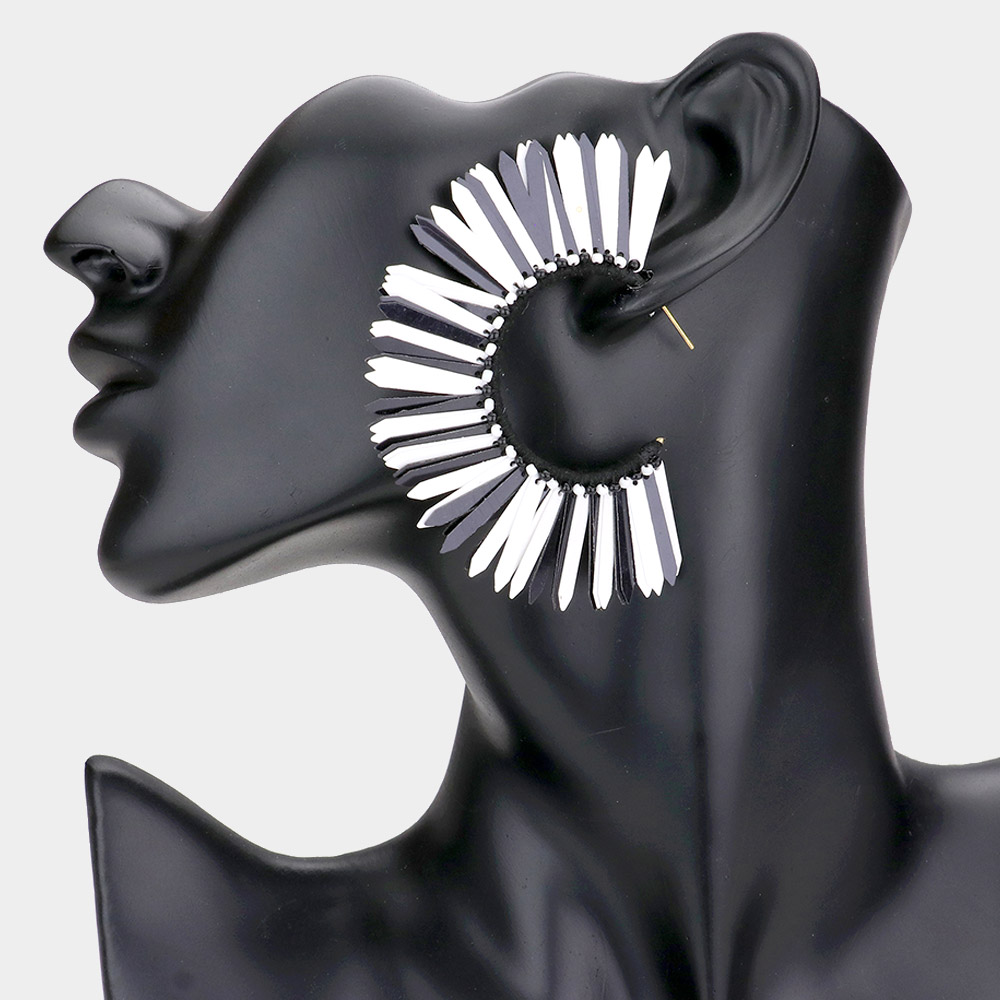 Mardi Gras Open Metal Hexagon Tassel Fringe Dangle Earrings