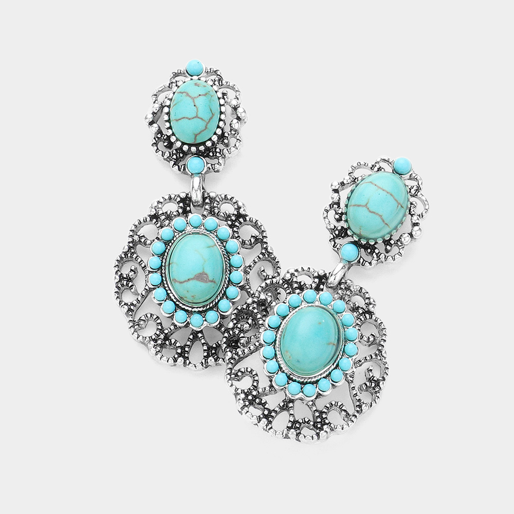 Bohemian Oval Western Turquoise Stone Dangle Earrings