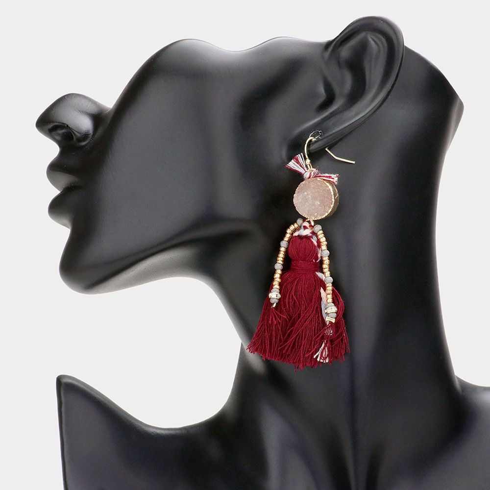 American USA Flag Theme Druzy Teardrop Stud Earrings