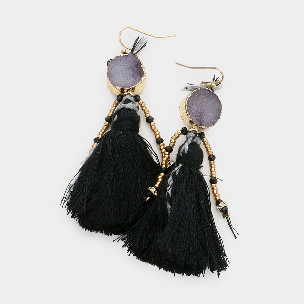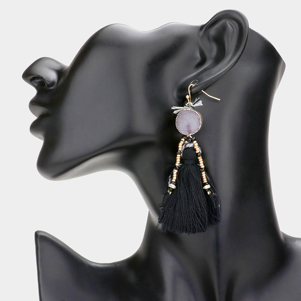 Round Druzy Scratched Metal Arch Link Dangle Earrings