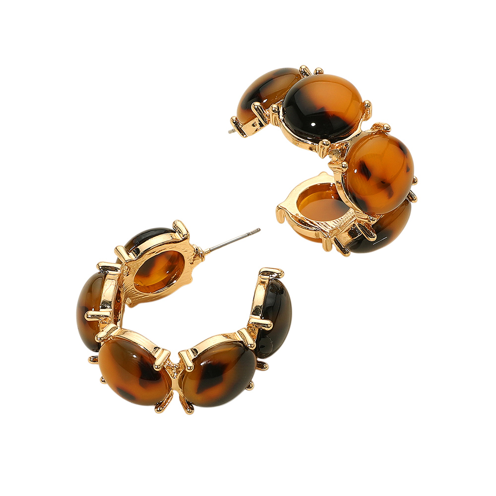 • Add earthy elegance to your outfit with these gold hoop earrings featuring bold oval gemstone-like accents. Their rich finish and sculptural design bring a luxe boho vibe to both casual and formal looks. A standout accessory for confident, modern styling.