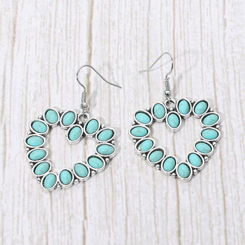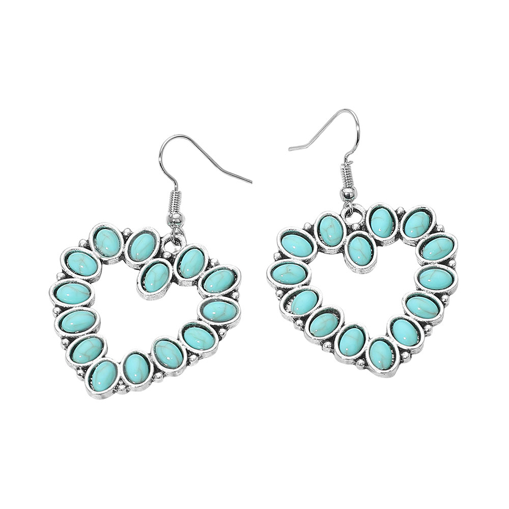 Details • Size : 1.3" X 2" • Fish Hook Back • These heart-shaped drop earrings feature a delicate arrangement of oval accents that create a striking, romantic silhouette. Perfect for adding a touch of charm to any look, they balance bohemian artistry with timeless elegance, making them ideal for everyday wear or special occasions. • Lead and Nickel Compliant