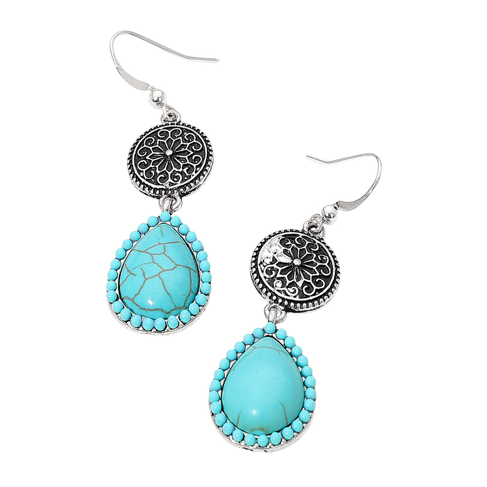 Details • Size : 1" X 2.5" • Fish Hook Back • Bohemian-style dangle earrings featuring teardrop shapes suspended from ornate round filigree accents. The combination of circular and teardrop elements creates a graceful silhouette perfect for casual wear, festivals, and stylish everyday looks. • Lead and Nickel Compliant
