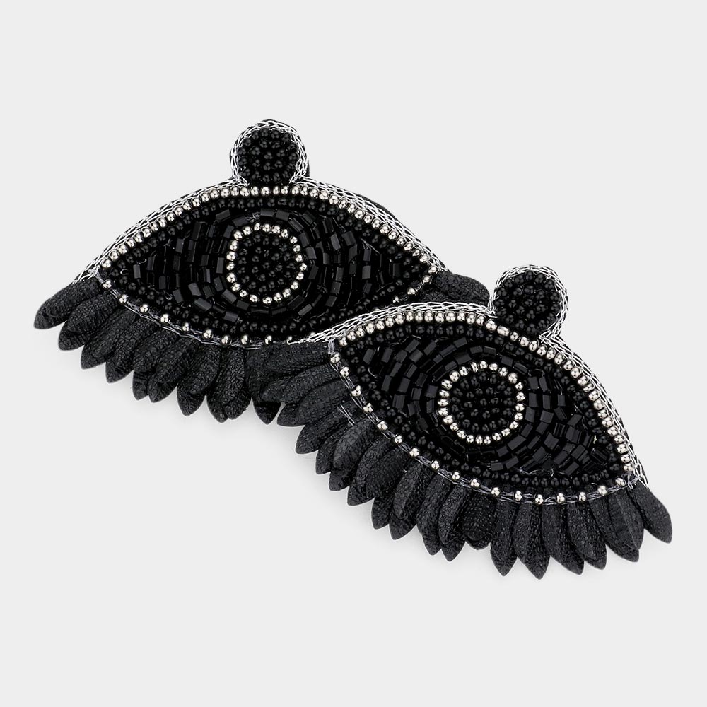 Boho Seed Beaded Evil Eye Fringe Dangle Earrings