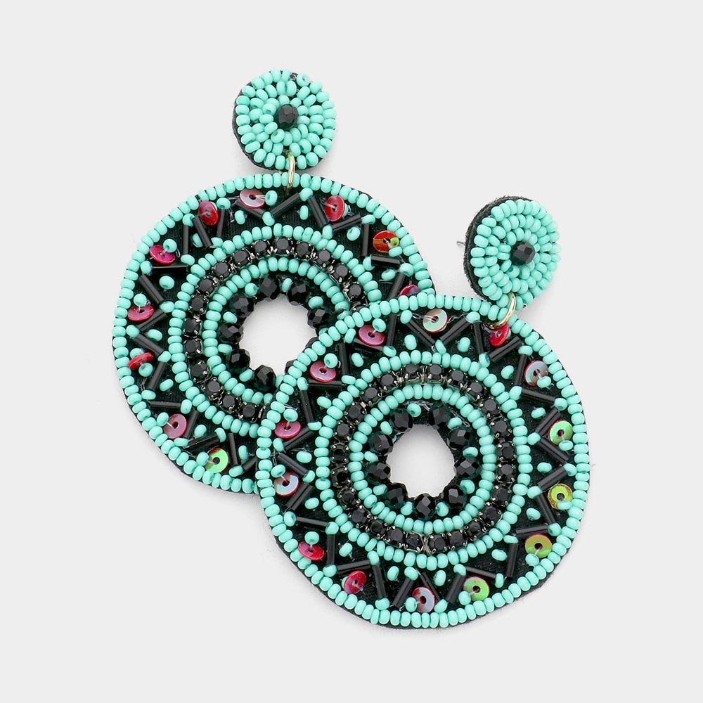Boho Sequin Multi Beaded Open Circle Dangle Earrings