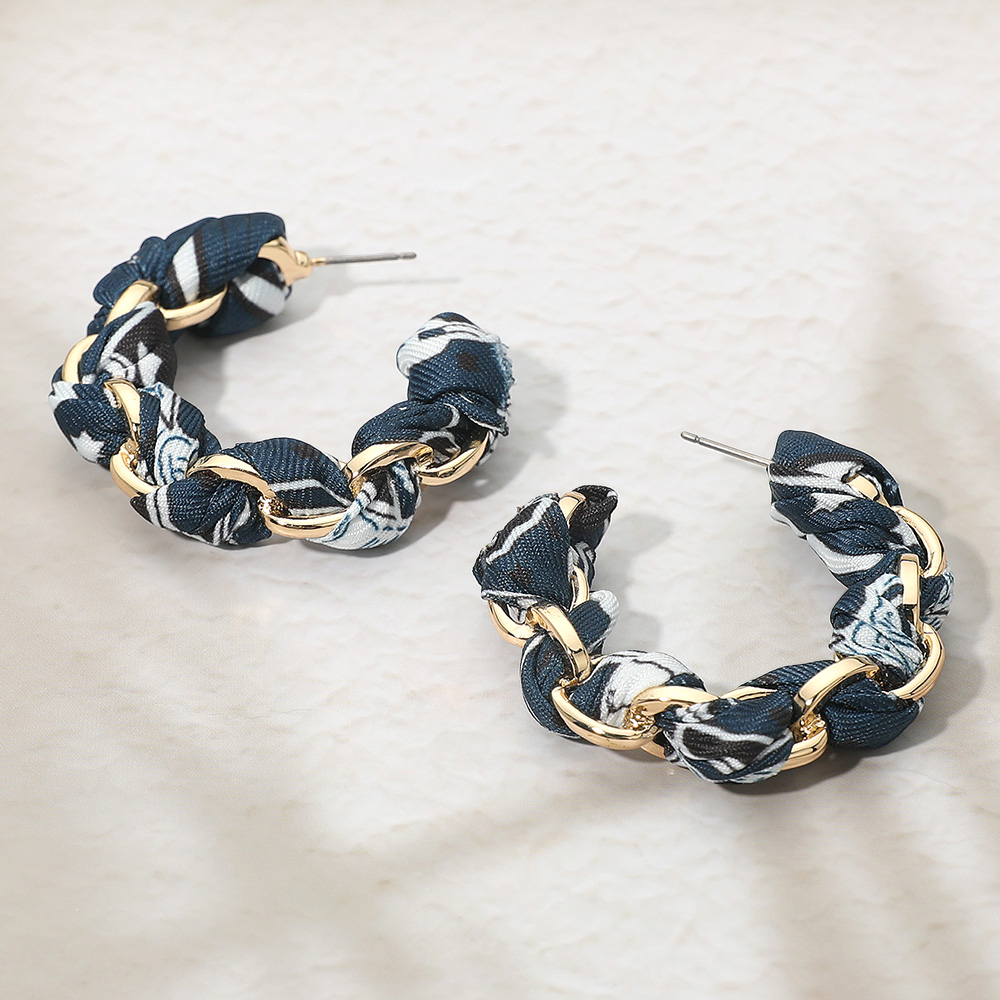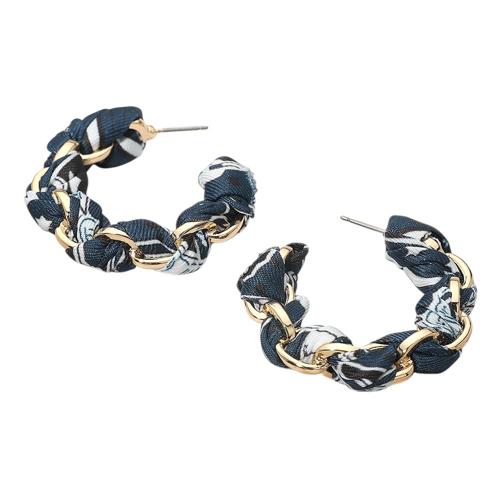 Bold Boho Braided Scarf Fabric Hoop Earrings