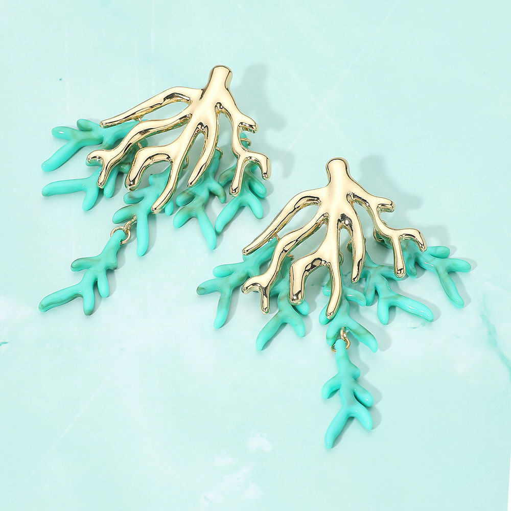 • Bold coral branch statement earrings designed with gold-tone detailing for a striking ocean-inspired look. Perfect for summer, beach vacations, or coastal-themed events, these earrings add tropical charm and unique flair to any outfit. A standout accessory for sea-inspired fashion lovers.