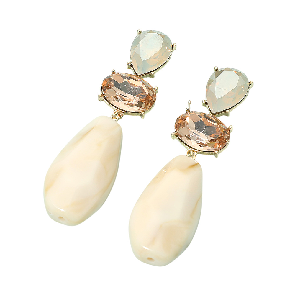 • Striking drop earrings featuring faceted stones paired with marbled resin drops for a bold yet elegant design. Perfect for making a statement, these earrings bring a touch of glamour and sophistication to any outfit.