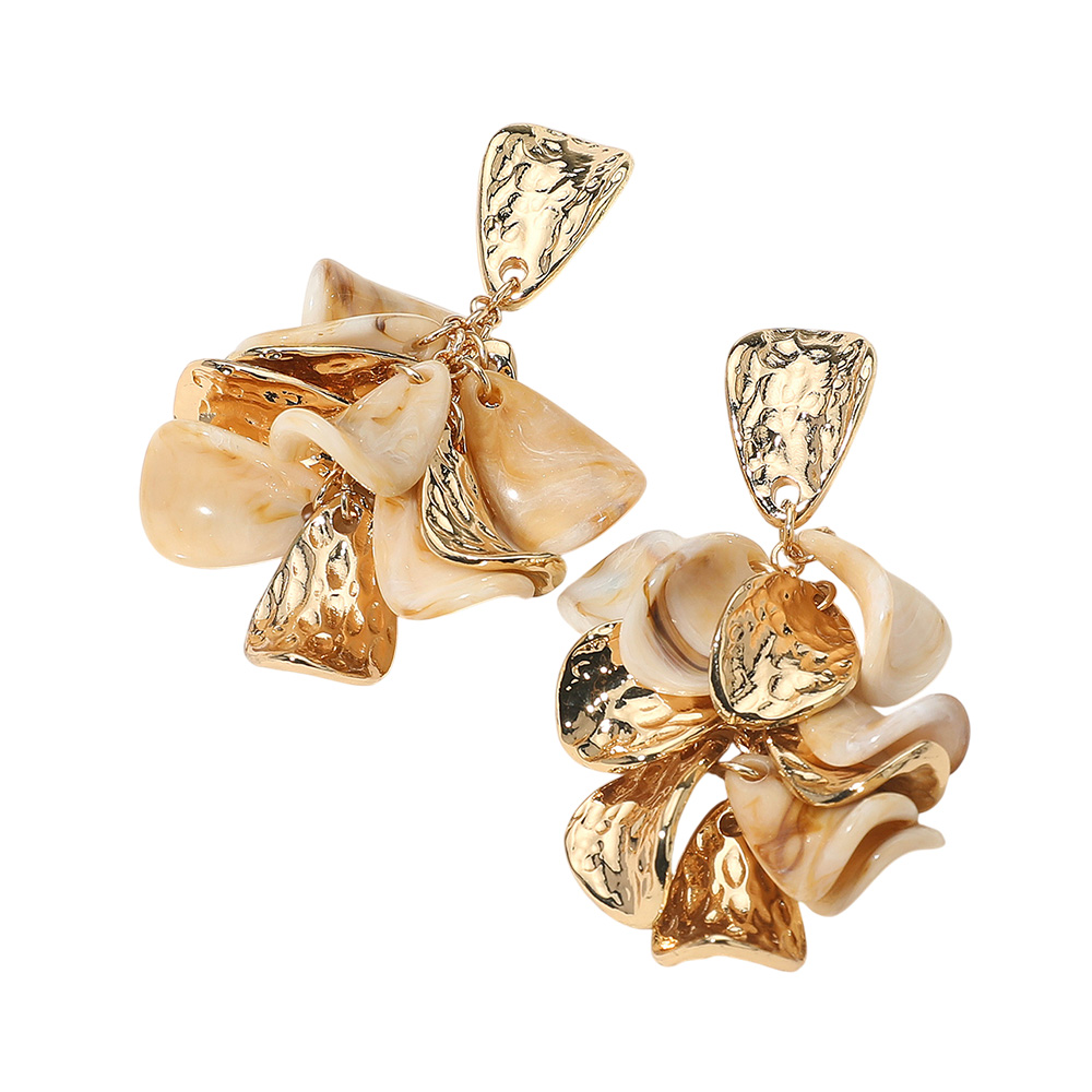 Bold Floral Design Textured Petal Statement Drop Earrings