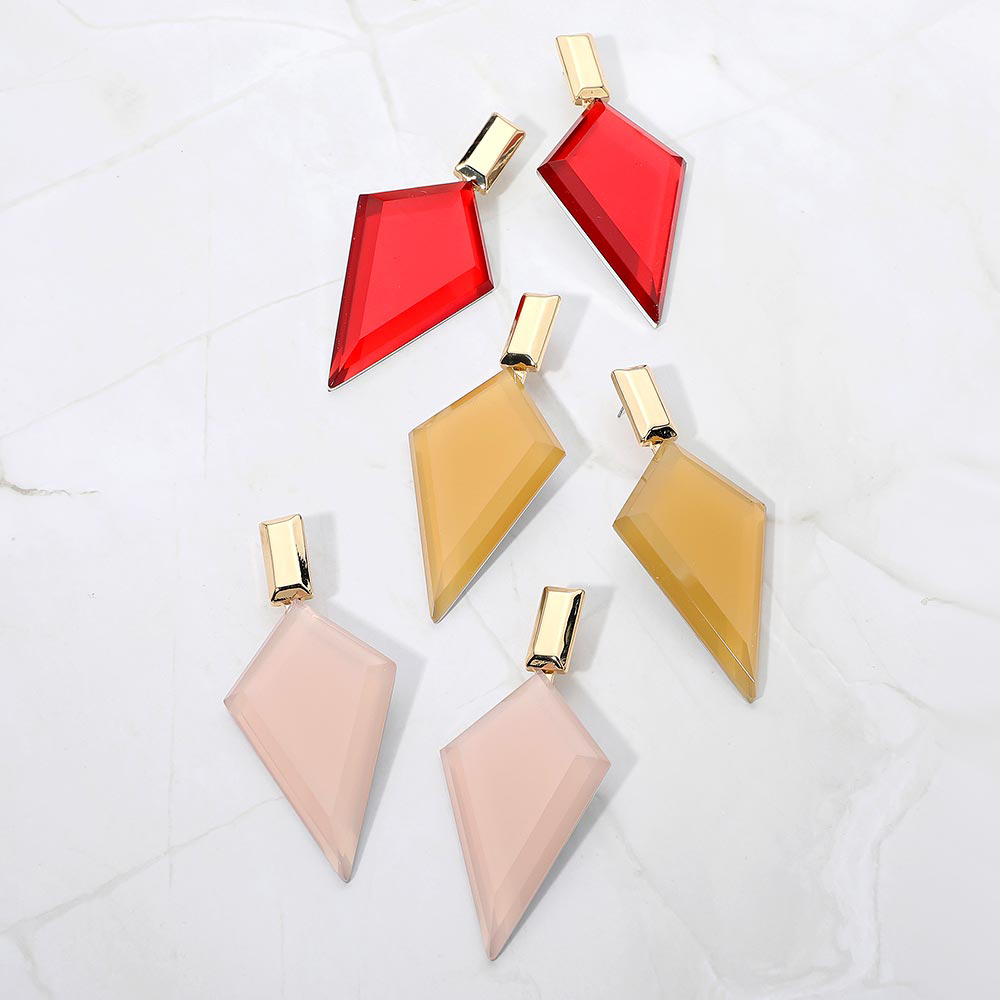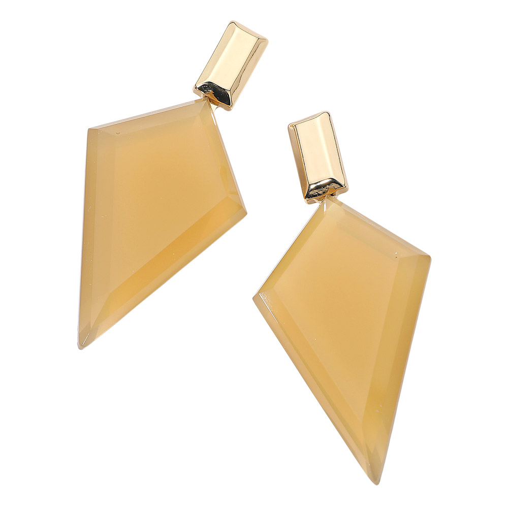 Details • Size : 1.75" X 3.75" • Post Back • Chic bold geometric drop earrings featuring bold angular resin shapes paired with sleek metal accents. A modern statement accessory perfect for elevating everyday outfits or adding a contemporary touch to evening looks with clean, sculptural style. • Lead and Nickel Compliant