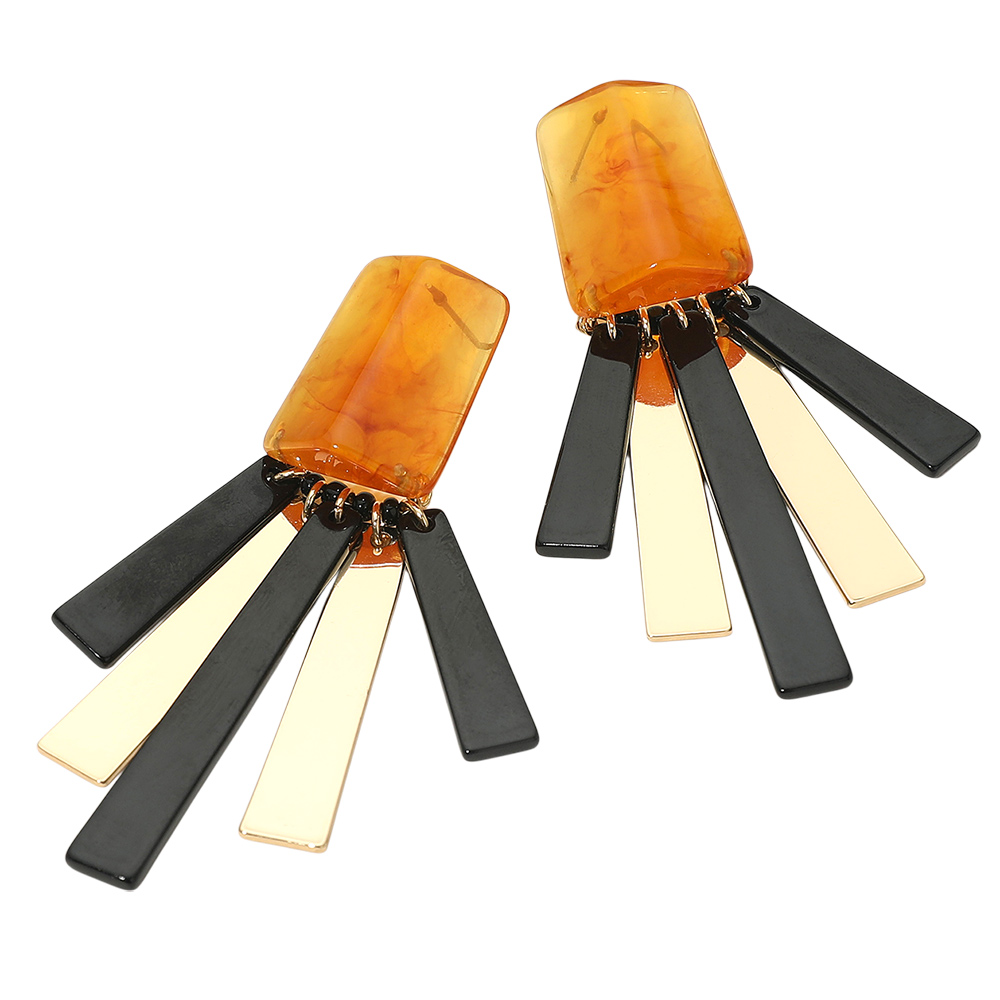 Bold Geometric Resin Metal Bar Fringe Statement Earrings