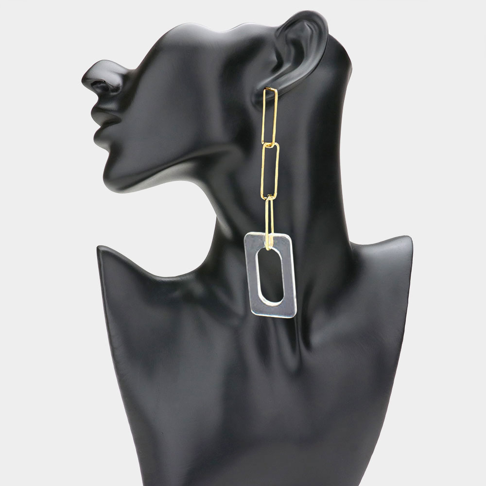 Bold Resin Square Link Paperclip Chain Drop Earrings Bold Resin Square Link Paperclip Chain Drop Earrings