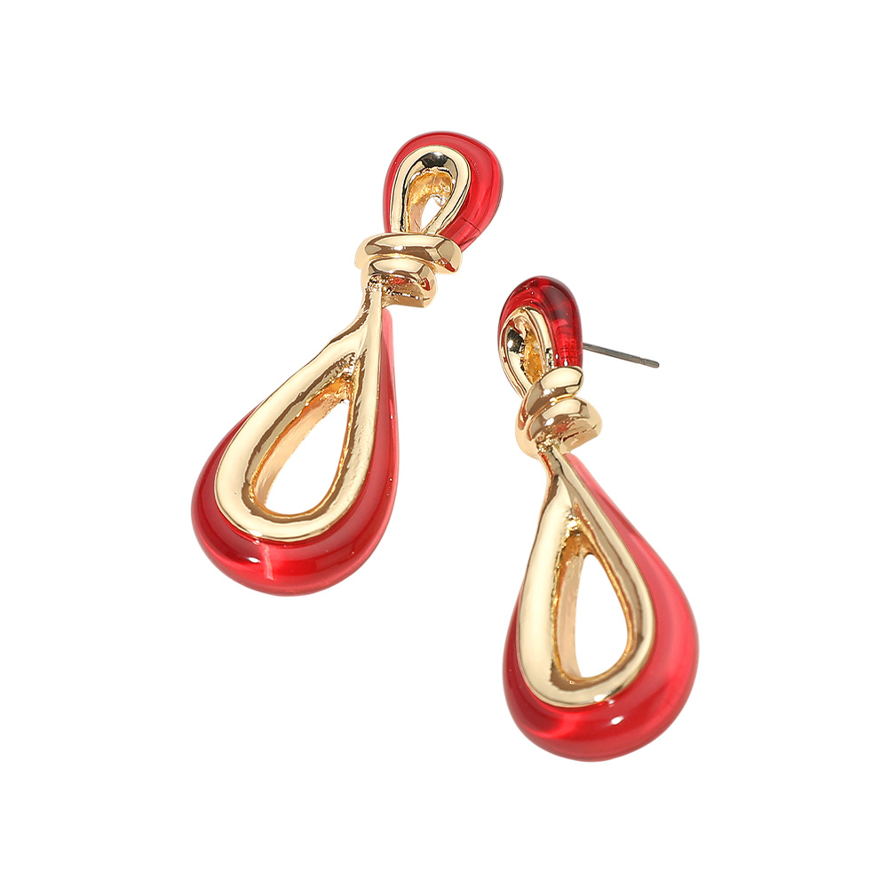 Details • Size : 0.8" X 2.4" • Post Back • Add bold sophistication to your look with these elegant teardrop statement earrings. Featuring a sleek modern design with fluid lines, they are perfect for evening wear, parties, or special occasions, offering a stylish balance of glamour and contemporary charm. • Lead and Nickel Compliant