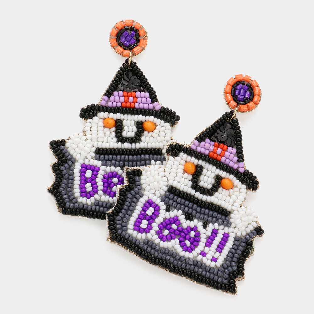 Boo!! Message Felt Back Seed Beaded Ghost Dangle Earrings
